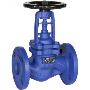 Cast iron Econ® bellow sealed globe valves, SS trim, pressure rating PN16, straight pattern, flanged ends acc. to DIN PN 16, outside screwed stem and non-rising handwheel.